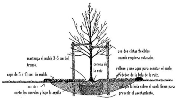 El éxito de una plantación depende en mucho de esta etapa. Es particularmente importante prever un riego eficaz y las posibilidades de fertilización ,para facilitar la recuperación del árbol.