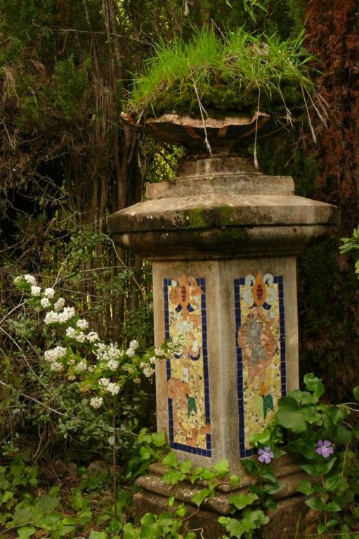 Pasando por otra escalera, son múltiples en este lugar, llegamos a una fuente circular que alberga una masa arbustiva de Cala (Zantedeschia aethiopica).