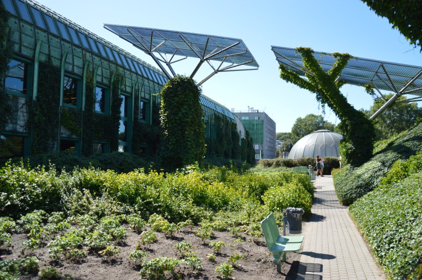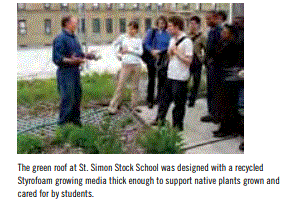 Techo verde: cubiertas de techo con vegetación, con medios de cultivo y plantas que reemplazan la membrana desnuda, el lastre de grava, las tejas o las tejas. El número de capas y la ubicación de las capas varían de un sistema a otro y del tipo de techo verde, pero incluyen una capa de impermeabilización, drenaje, medios de cultivo y plantas.