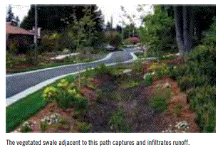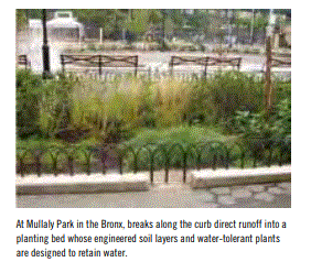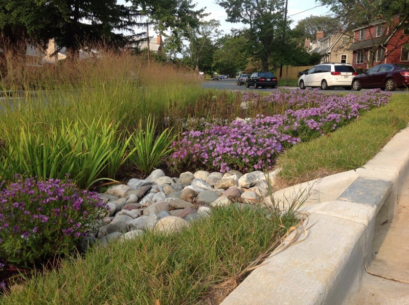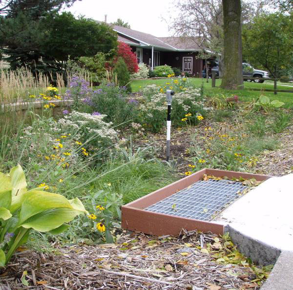 Rain Garden: una depresión plantada que permite la escorrentía del agua de lluvia de áreas urbanas impermeables como techos, entradas de vehículos, pasillos, estacionamientos y áreas de césped compactado, la oportunidad de ser absorbidos. Esto reduce la escorrentía de lluvia al permitir que las aguas pluviales penetren en el suelo.