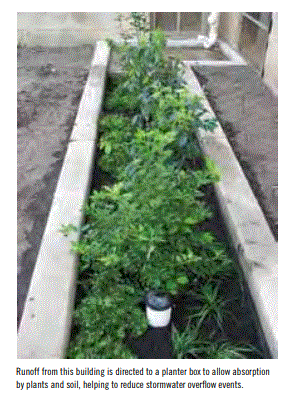 Caja de maceta: una estructura, generalmente formada de hormigón o ladrillo que se llena con suelos y plantas absorbentes para almacenar la escorrentía temporalmente y proporcionar tratamiento. Las cajas de maceta capturan la escorrentía de pequeñas tormentas, generalmente de áreas de techos, y son especialmente útiles en los espacios limitados de las áreas urbanas. Proporcionan un tratamiento de calidad del agua en el proceso de desaceleración y reducción de la descarga máxima de pequeños eventos de lluvia.