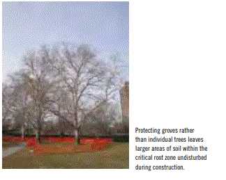 Zona de raíz crítica (CRZ): un círculo imaginario en el suelo que se corresponde con la línea de goteo del árbol, a veces llamada la zona de protección del árbol. Esta zona se utiliza para determinar la perturbación permitida en el área alrededor de un árbol existente durante la construcción. Como la línea de goteo es muy irregular, a menudo se hace referencia al diámetro del tronco para calcular la CRZ. Para determinar un CRZ, mida el diámetro del árbol a 4.5 pies por encima del nivel y multiplíquelo por 12 pulgadas. Si bien este es un método generalmente aceptado para medir CRZ, los sistemas de raíces variarán en profundidad y se extenderán según el tamaño del árbol, la calidad del suelo, el nivel freático, las especies y otros factores relacionados.