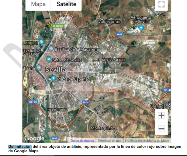 - Importación de un archivo con la delimitación del área objeto del análisis, en este caso el límite del casco urbano de la ciudad de Sevilla.