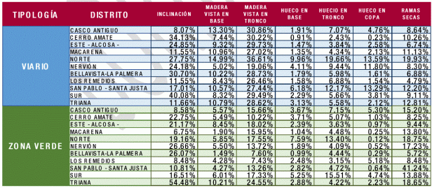 La representatividad de los aspectos analizados en el conjunto de la población arbolada es la siguiente: