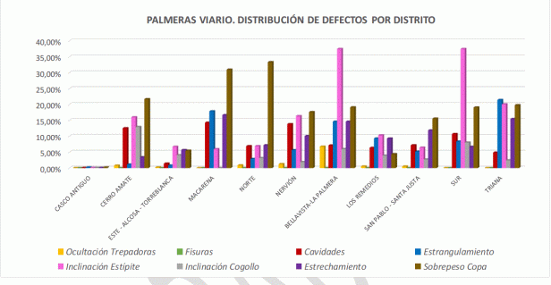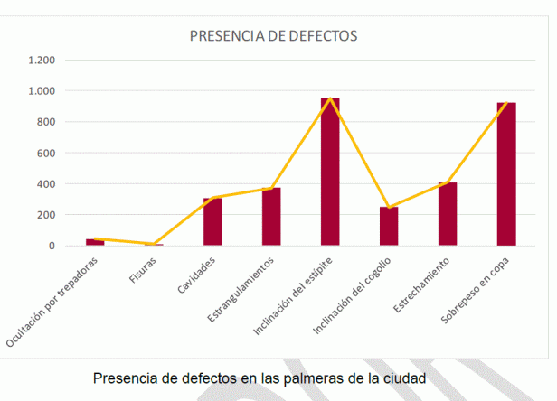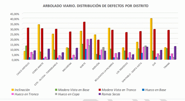 - Alto porcentaje en la ciudad de árbol heredado, que sufrió malas prácticas de mantenimiento, como la reiteración de podas drásticas, que han conducido a su progresivo debilitamiento, a la generación de problemas estructurales y, en resumen, a una situación actual en la que el margen de actuación de los gestores es muy limitado y orientado a paliar las consecuencias de los problemas existentes hasta que sea posible su renovación.