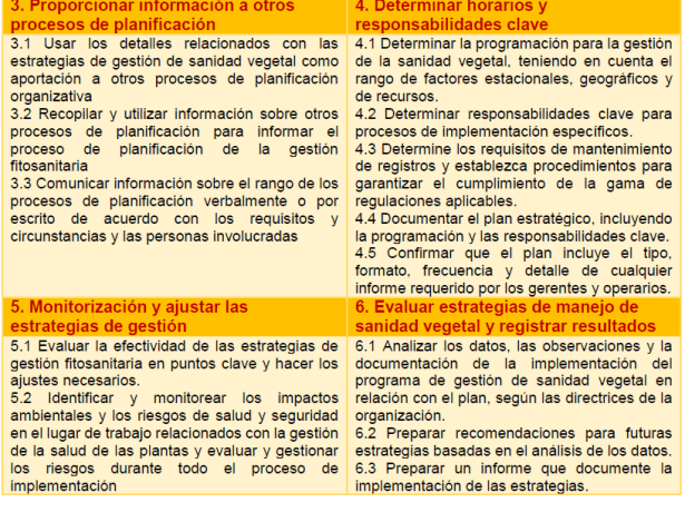 - 1 Usar los detalles relacionados con las estrategias de gestión de sanidad vegetal como aportación a otros procesos de planificación organizativa