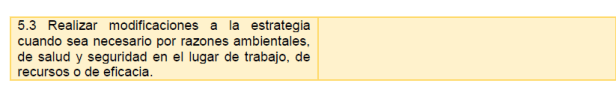 5.3 Realizar modificaciones a la estrategia cuando sea necesario por razones ambientales, de salud y seguridad en el lugar de trabajo, de recursos o de eficacia.
