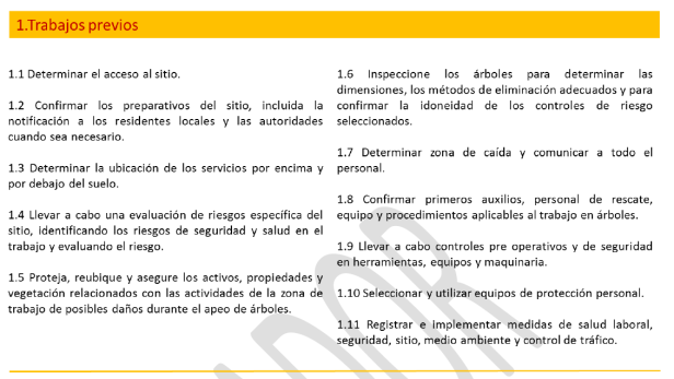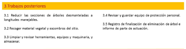 Asimismo se requiere un buen conocimiento de las técnicas de poda, de los elementos y técnicas de protección individual, del entorno en que se encuentra el árbol, etc.