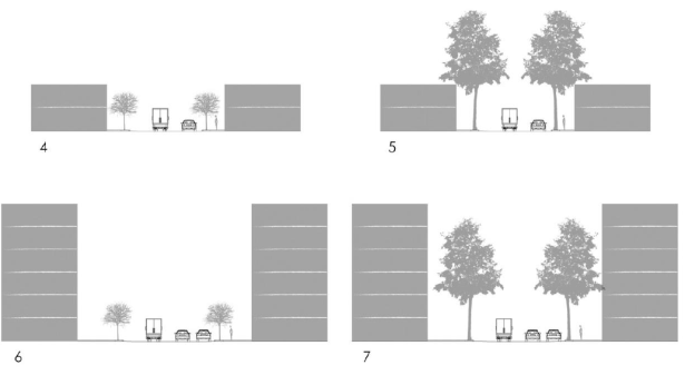 Los siguientes esquemas (pertenecientes a la obra “El Árbol Urbano. Gestión Municipal del Arbolado en la Ciudad” de J. Ramón Gómez Fernández) ilustran las propuestas señaladas.