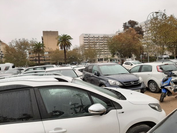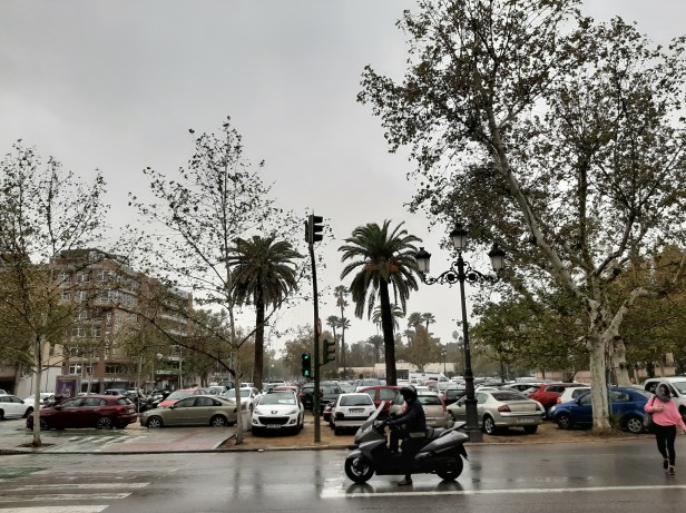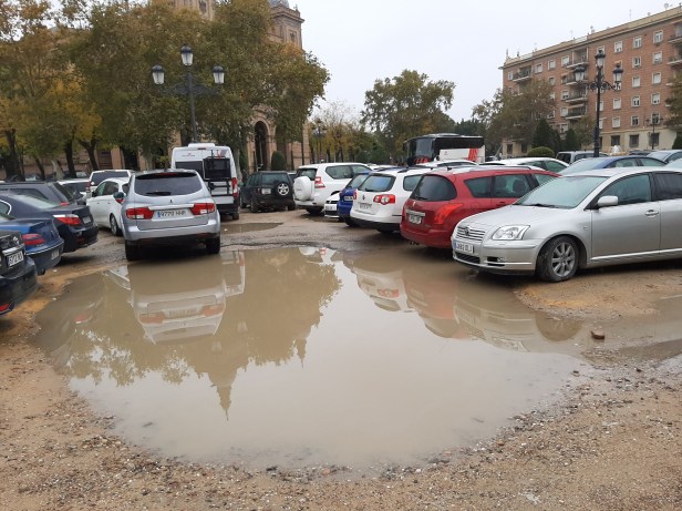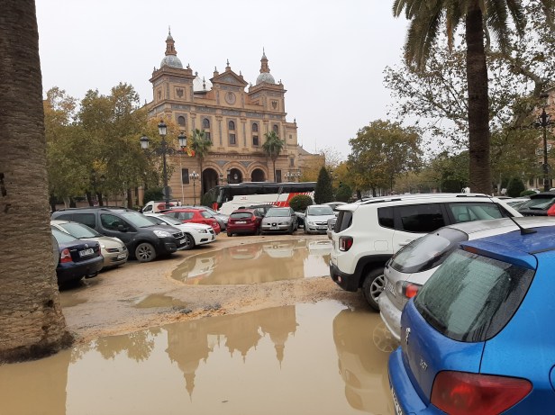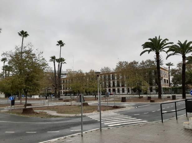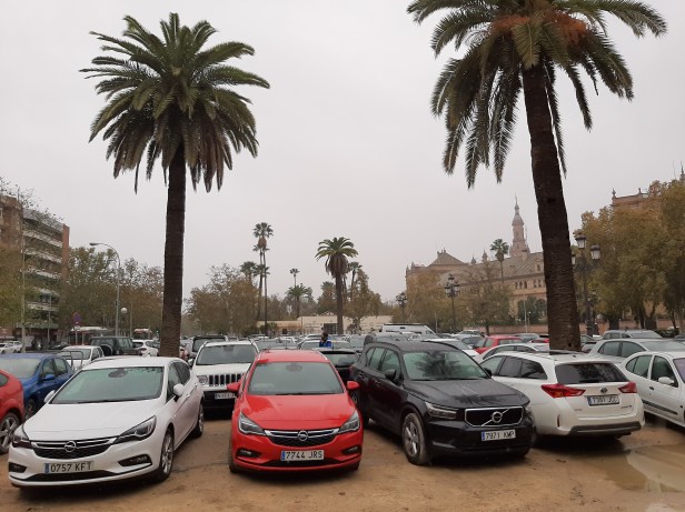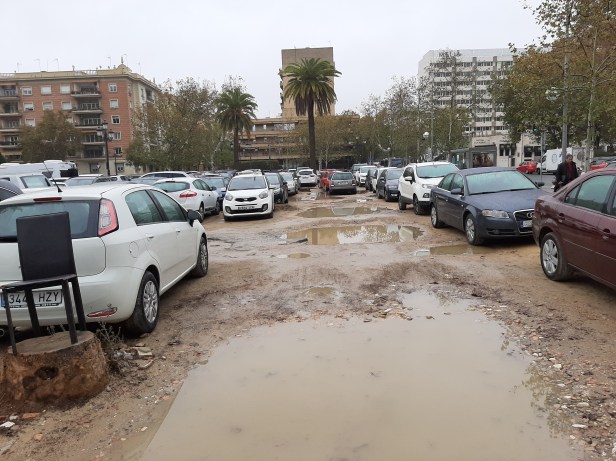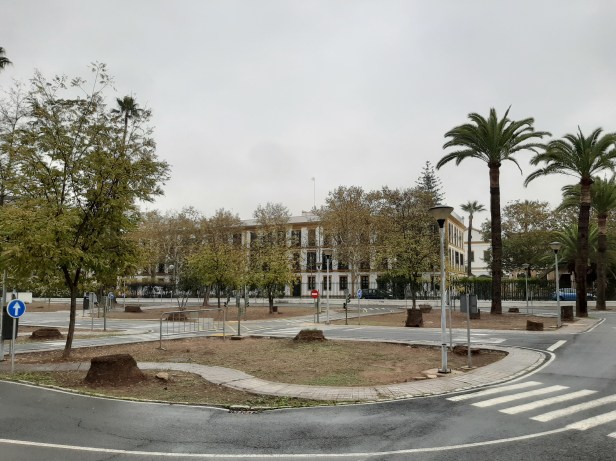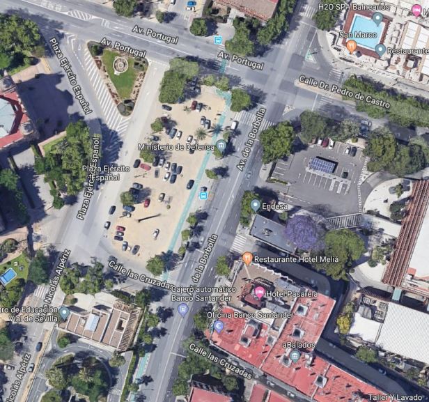 El solar situado entre la Avda. de Portugal, la Avda. de la Borbolla y la Glorieta del Ejército Español ,junto a Capitanía General permanece en su más completo abandono y convertido en un aparcamiento masivo de coches con grave compactación del suelo y haber sufrido ataque del picudo rojo las palmeras.
