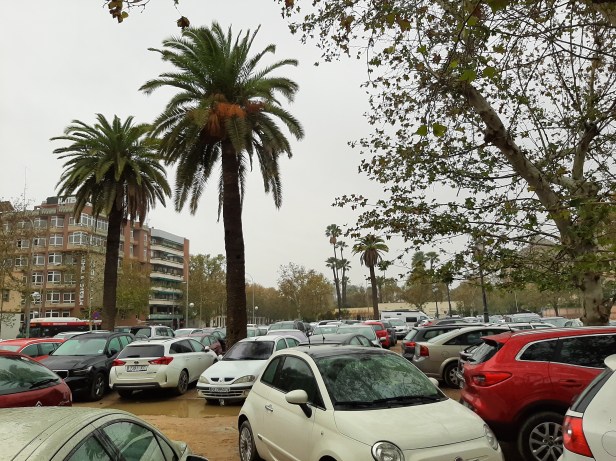 De las ocho palmera.-Phoenix canariensis solo quedan tres que han superado el ataque del picudo rojo.- Rhynchophorus ferrugineus ,cinco desaparecieron por el ataque que asoló el parque de Trafico cercano donde no dejo ni una palmera viva de las quince que existían, tal como puede apreciarse en las fotos que se acompañan