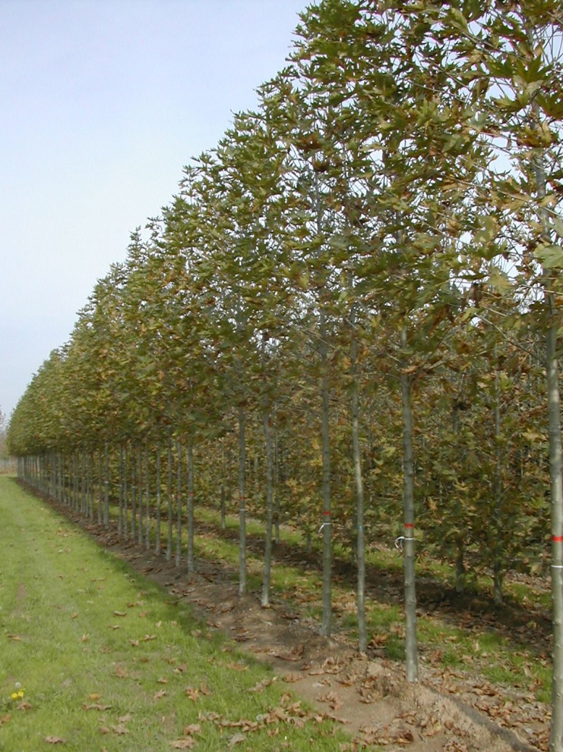 Debido a la variabilidad en el cuidado de los árboles urbanos durante y después de la plantación, es importante elegir plantas individuales que tengan una alta probabilidad de supervivencia, con un mínimo de cuidado suplementario requerido más allá del momento de la instalación. Se ha demostrado que los sistemas de producción de viveros influyen en el establecimiento y crecimiento de árboles después del trasplante, ) y, por lo tanto, pueden ser un parámetro importante para elegir el vivero en relación con la plantación de árboles en el entorno urbano. Los árboles jóvenes generalmente se producen utilizando uno de los tres tipos principales de sistemas de producción de viveros: árboles cultivados en contenedor (CG), árboles excavados con cepellón de raíz excavados y envueltos en arpillera (B&B), y árboles cultivados en campo a raíz desnuda (BR). El objetivo de desarrollar cada uno de estos sistemas es producir un vivero saludable de manera eficiente y rentable. Sin embargo, existen diferencias entre estos sistemas tanto en la calidad del material vegetal (particularmente el desarrollo de la raíz y la viabilidad del trasplante posterior) como en los costos asociados.