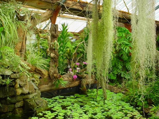 El encanto de las islas paradisíacas a través de una puerta cortada en la pared citada arriba se entra al jardín de las Indias Occidentales. Tan pronto como entras por esta puerta, subes escalones que parecen muy rústicos. Estos pasos conducen a una pasarela elevada. Desde allí podemos ver algunos puntos de vista de este jardín. Además del jardín del Perú, que se encuentra en el límite inmediato de este jardín. Y cuando uno desciende de este pasaje por otra escalera, uno avanza en una vegetación exuberante y húmeda cuyo verde denso es puntuado regularmente por los montones negros de rocas que se forman como macetas, olas, hojas grandes que a veces emergen de los abismos. imaginado y uniéndose a las inmensas raíces aparentes de un Ficus. A su alrededor, las rocas crudamente apiladas le dan a la escena la apariencia de un anfiteatro. Una cueva se abre bajo nuestros pies y nos hundimos en una sala abovedada irregular. La luz entra a través de altas aberturas bordeadas por Monstera, Ficus, Tradescantia … A este nivel, el caminante está a una profundidad de 2 m debajo del suelo. Luego fue vencido por un sentimiento de temor, de angustia provocada al mismo tiempo por la pérdida de luz y la aspereza de la materia que proviene de las rocas puntiagudas. Este pasaje a las profundidades del suelo tiene como objetivo acentuar el espesor y el misterio de los alrededores del bosque. Luego, de vuelta al nivel de 0 m, hay una atmósfera vegetal con un aspecto completamente diferente debido a la abundancia de lianas que hacen que caminar sea casi imposible. Un poco más allá, hay una escalera limitada a ambos lados por jardineras superpuestas. Esta escalera conduce a un puente de hormigón que atraviesa el arroyo que atraviesa el jardín brasileño y que tiene como destino el jardín mexicano. En esta parte, observamos un claro predominio de especies. La madera consiste en árboles con bóvedas «cerradas» porque su follaje toca y no deja muchos espacios entre ellos. Por lo tanto, hay muy poca luz. En consecuencia, las plantas en el estrato inferior nunca tienen el aspecto enredado que dificulta el caminar. Para salir de esta espléndida parte del jardín de las Antillas, que está dominada por la oscuridad, la frescura y los colores azules, primero se pasa por un pequeño puente de hormigón que encaja perfectamente en la escena representada por los neumatóforos del ciprés calvo Luego, en una pendiente bastante empinada bordeada a ambos lados por plantas herbáceas, el caminante llega al callejón principal.