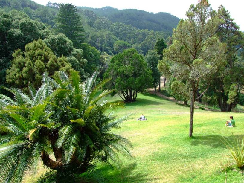 Está diseñado en un estilo romántico con un lago, varios manantiales y fuentes, grutas, y está rodeado de exuberante vegetación con especies raras. El jardín está lleno de plantas organizadas según zonas geográficas. Hay arbustos regionales de fresa y acebo cultivados naturalmente, alcornoques; araucaria y palmeras, helechos arbóreos de Australia y Nueva Zelanda; y agaves y yucas de México. Hay camelias, azaleas, rododendros, bambúes que también representan a Japón.