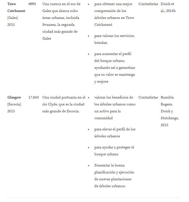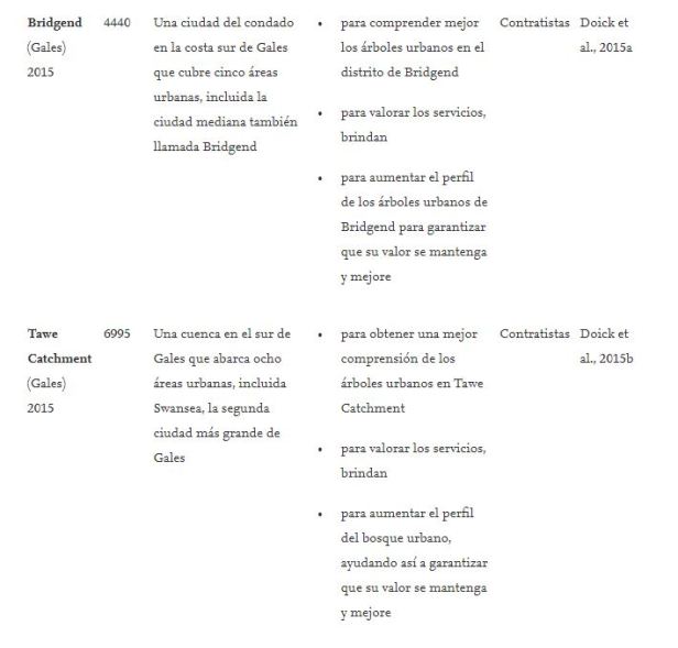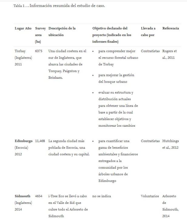 En GB, el primer proyecto i-Tree Eco fue en Torbay, Inglaterra, en 2011 y ahora se ha utilizado en más de 20 áreas urbanas ( Fig. 1) Aunque a menudo ha habido un uso de alto perfil de i-Tree Eco en los últimos diez años, ha habido sorprendentemente poca evaluación del impacto derivado de estos proyectos. Los informes de impactos son en gran medida anecdóticos, con afirmaciones de que mejoran la apreciación de los árboles urbanos ( Soares et al., 2011 ), informan los objetivos de gestión ( Ordóñez y Duinker, 2013 ), aumentan los presupuestos de los árboles ( Wells, 2012 ) e inspiran esquemas de plantación de árboles. ( Morgenroth y Ӧstberg, 2017 ).