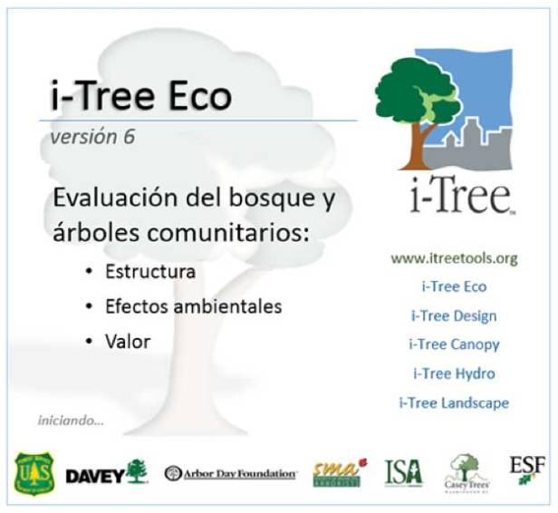i-Tree es un conjunto de programas de software desarrollado por el Servicio Forestal del Departamento de Agricultura de los Estados Unidos e introducido en 2006 ( NRS, 2018 ) para «cuantificar los beneficios y valores de los árboles en todo el mundo; ayuda en la gestión y promoción de árboles y bosques; [y] muestran riesgos potenciales para la salud de los árboles y los bosques ”( http://www.itreetools.org ). i-Tree Eco, el paquete de software más utilizado, es un paquete diseñado para proporcionar datos sobre la estructura, la composición y el estado del bosque urbano, incluida la cobertura de la copa, la composición y el estado de las especies (muerte de la copa) de los árboles, y los costos de reemplazo de árboles ( Nowak et al., 2008 ). El modelo utiliza datos recopilados con métodos de campo estandarizados ( Nowak et al., 2008) El uso de datos de campo diferencia a i-Tree Eco de muchas otras herramientas de evaluación y valoración ( Sarajevs, 2011 ). Utilizando estos datos, el modelo también calcula y valora los servicios ecosistémicos de almacenamiento y secuestro de carbono, eliminación de la contaminación del aire y evasión de agua evitada ( Nowak et al., 2008 ). La integración de una evaluación del estado biofísico y el valor económico de varios servicios ecosistémicos permite una comprensión más profunda del sistema ecológico de soporte de vida de los bosques urbanos ( Nikodinoska et al., 2018 ).