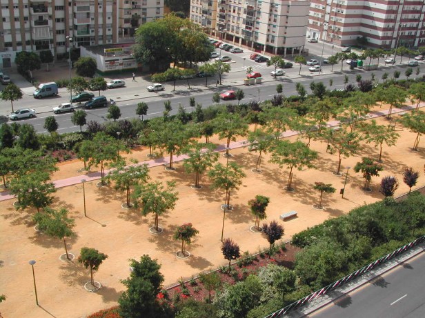 No era fácil encontrar en viveros plantas adecuadas para la vía pública de Tipuana tipu en los viveros de Andalucía no se cultivaban en aquel entonces, teníamos que recurrir a viveros de Murcia para conseguir ejemplares aptos.