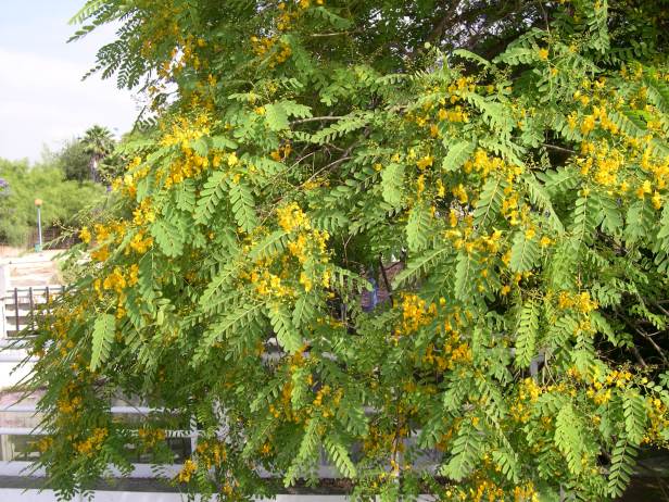 Su presencia en la ciudad la ha convertido en uno de los árboles significativos por su rápido crecimiento, por sus amplias copas y su fulgurante floración amarillas en época estival sucediendo a la azul morado que el mes anterior nos han dado las Jacarandas. Estan presentes en muchas barriadas que se construyerón en esta época.
