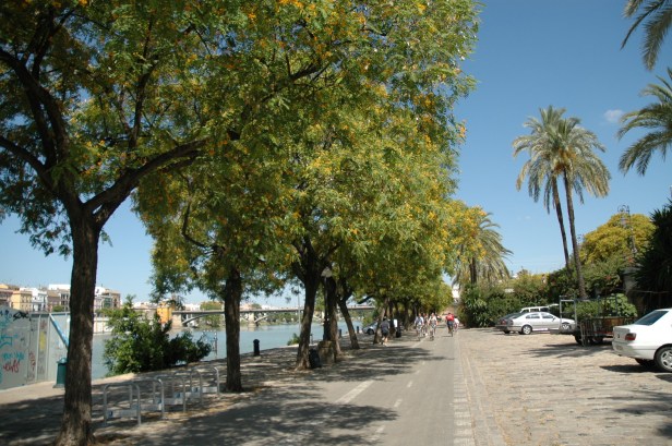 Nos equivocamos al utilizarla en la calle San Jacinto en un acerado estrecho donde esta no tenía cabida, intentamos corregir este error sustituyendo la especie por otra mas adecuada al espacio disponible, pero la red que servicios que transcurren por el acerado, instalados después de la plantación lo convertían en un proyecto costosísimo.
