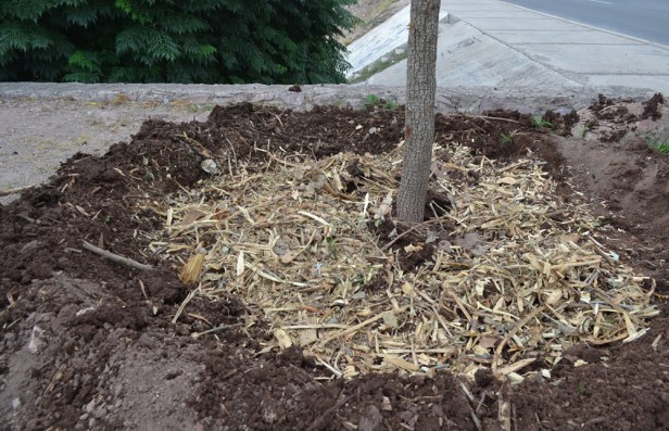 Las superficies de los agujeros de plantación se pueden revestir con mantillo o BRF * (madera triturada).
