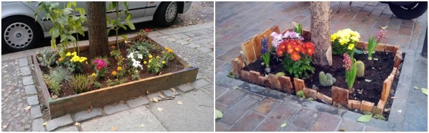Alcorques plantados con ornamentales