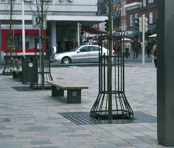 Estas rejillas están hechas de hierro fundido, acero u hormigón armado. Los fabricantes los ofrecen en gamas coordinadas de mobiliario urbano. Rodean la base del árbol. Algunos fabricantes ofrecen modelos en los que el diámetro interior se puede adaptar según el tamaño del árbol. El borde descansa sobre el marco del árbol y no toca el suelo. El espacio entre el suelo y la rejilla se puede llenar con mantillo mineral (bolas de arcilla expandida o tierra volcánica, por ejemplo). Deben resistir el paso de máquinas de limpieza o vehículos pequeños y deben  estar reforzados para distribuir las cargas. Son adecuados para el tráfico de peatones siempre que permanezcan planos. Tan pronto como son desestabilizados por las raíces, pueden volverse realmente peligrosos.