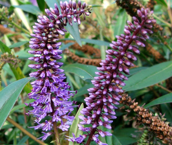 - Plantas nativas de Nueva Zelanda, especialmente los árboles de col, de lino y toetoe.-Austroderia.