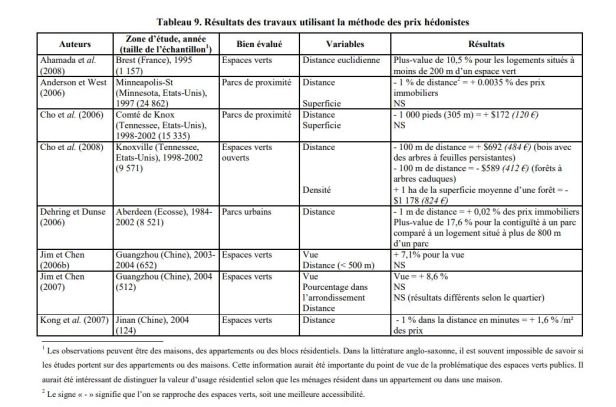 Ningún método puede proporcionar una estimación exhaustiva del TEV de los espacios verdes. Cada método mide un valor específico. No deben oponerse entre sí, sino que deben entenderse en su complementariedad. Si se usan juntos, pueden ayudar a comprender una amplia gama de preguntas relacionadas con la evaluación. En esta tesis, optamos por el método de precio hedónico.