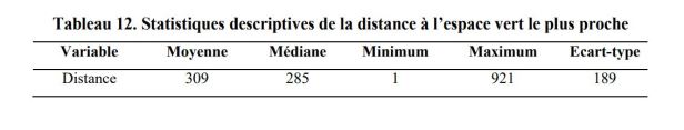 La forma en que los individuos se apropian de estos espacios difícilmente se puede entender en un modelo económico, ya que se refiere a la percepción de todos. A pesar de esto, sería posible enriquecer nuestro análisis llevando a cabo un trabajo de campo que consiste en identificar las características de los diferentes espacios verdes (presencia de un parque infantil, horario de apertura, floración, etc.). Desde un punto de vista metodológico, son posibles varias extensiones de este trabajo. Se debe evaluar la heterogeneidad y la autocorrelación espaciales (ver Le Gallo, 2002, 2004). La heterogeneidad espacial se refiere al hecho de que existe una diferenciación de los bienes inmuebles de acuerdo con su ubicación geográfica, como los barrios. La autocorrelación espacial implica que los precios de los apartamentos están influenciados por los precios del vecindario o la existencia de una variable omitida espacializada que influiría en los precios de las propiedades.