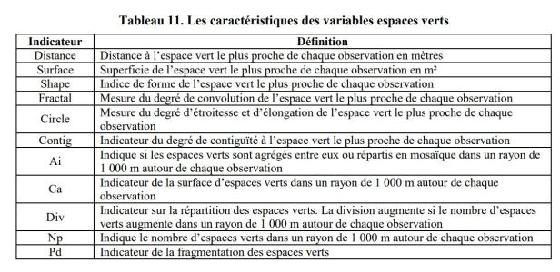 En la literatura sobre precios hedónicos, no existe a priori una escala adecuada para las variables de amenidad . Especialmente porque dependiendo del trabajo, los niveles de resolución y las mediciones difieren. Por estas razones, probamos tres escalas diferentes para los indicadores calculados a nivel de paisaje: cada indicador se calcula dentro de un radio de 100 m, 500 my 1000 m alrededor de cada apartamento. Las métricas a nivel de clase se calculan dentro de un radio de 1000 m alrededor de cada observación. Además, se calculan diferentes distancias: la distancia a cada punto más cercano a cada observación (por ejemplo, la distancia al espacio verde más cercano) y la distancia al centro de la ciudad (ubicado Place du Ralliement).