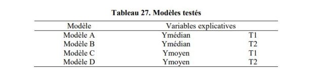Nuestro objetivo es verificar la validez del modelo de votante mediano para espacios verdes en nuestra área de estudio, ya que no se han realizado pruebas en Francia para estos servicios. El trabajo existente sobre gasto en parques y recreación utiliza el gasto total como la variable dependiente. Este trabajo valida la hipótesis del votante medio con altos coeficientes de determinación (R²). Sin embargo, no tienen en cuenta el efecto de tamaño1. Schläpfer (2007) ofrece una prueba del modelo de votante medio para el gasto por hectárea de área agrícola como parte de las medidas agroambientales en Suiza. Por lo tanto, controla el efecto de tamaño. Introduce las variables clásicas de ingreso medio / promedio, precio de impuestos y población. El cree varios modelos y encuentran bajo R² (entre 0.017 y 0.389) en comparación con la literatura existente sobre el votante mediano presentada en la sección 1 del capítulo 7. También debemos interpretar nuestros resultados con precaución. Incluso si mantenemos la misma especificación que otros trabajos, el período considerado y los contextos institucionales y políticos son diferentes según los estudios. Derycke y Gilbert (1988) evocan el «sesgo de país» que no permite la comparación directa de los resultados obtenidos en diferentes países.