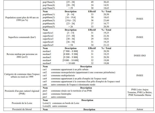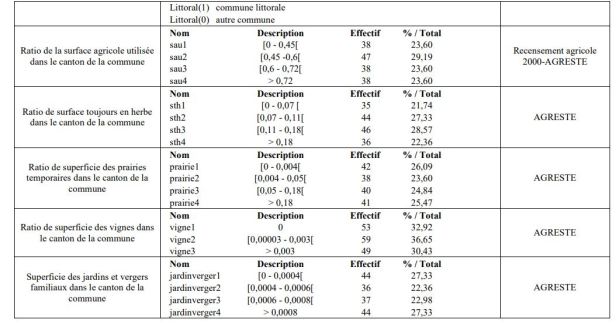Un análisis de las correlaciones permite eliminar ciertas variables: la densidad, el área de prados naturales o sembrados antes de 1994 en el cantón de la comuna y la población menor de 19 años.