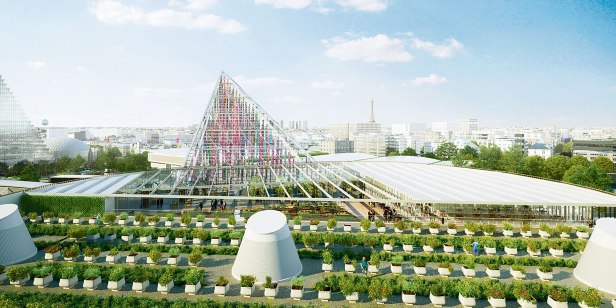 Los techos de los pasillos del Parc des Expositions en Porte de Versailles, en París, albergarán la granja urbana más grande del mundo en la primavera de 2020. Se dedicarán 14.000 m² al cultivo orgánico de treinta especies de frutas y hortalizas. Los productos se utilizarán para alimentar a los habitantes y varios restaurantes de los alrededores