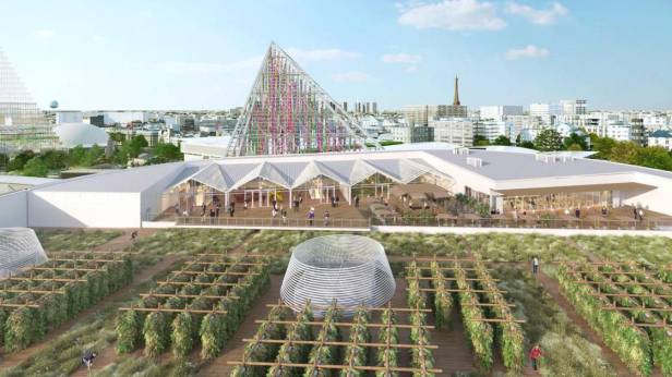 En el techo de una sala en el Centro de Exposiciones de París, una gran granja urbana está emergiendo lentamente del cemento. Una prueba para medir la capacidad de las ciudades para alimentarse un día, al menos parcialmente