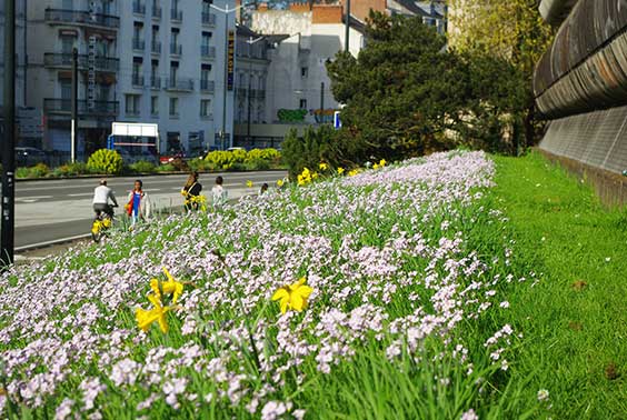 Otros sitios de menor prioridad son tratados de dos a cuatro veces al año. Mientras tanto, la vegetación vuelve y en evitación de incendios al secarse las hierbas anuales.. Las malas hierbas crecen a lo largo de las aceras, las flores crecen en los terraplenes, los musgos y los pastos aparecen entre los adoquines. Esto no es una falta de mantenimiento, es solo el retorno de la vegetación espontánea a la ciudad «, Un fenómeno que contribuye a la biodiversidad y aporta cierto encanto y frescura a la ciudad. ¿Sabía que a veces hay más especies diferentes que en el borde de un campo cultivado abundantemente rociado con pesticidas?