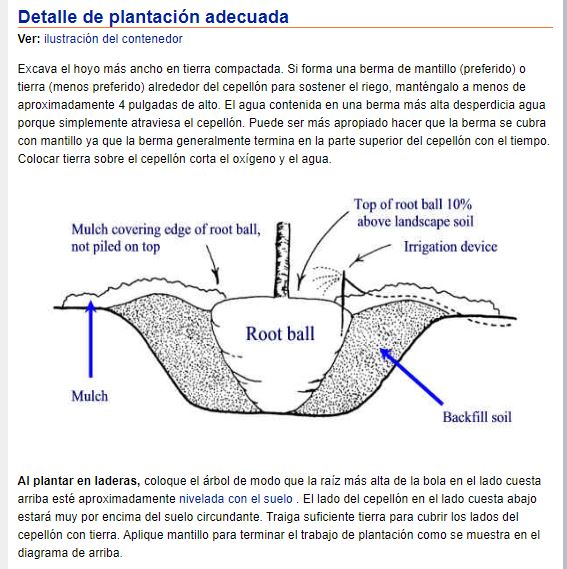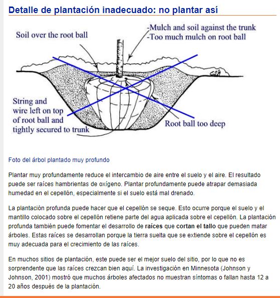 - Árbol plantado demasiado profundo en el contenedor o cepellón de campo