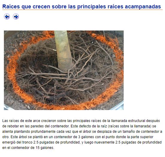 Desafortunadamente, a menos que se examinen varios sistemas raíz antes de la compra, el comprador no verá estos defectos. Las consecuencias de las deformaciones de las raíces pueden no ser evidentes hasta que los árboles sean más viejos y estén bien establecidos en el paisaje. Los árboles con raíces circulares intactas no deberían plantarse.