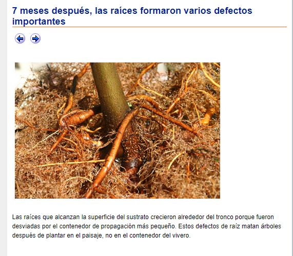 Las raíces de los árboles deformadas dentro de los primeros meses de propagación en el vivero pueden condenar a un árbol a muerte prematura.