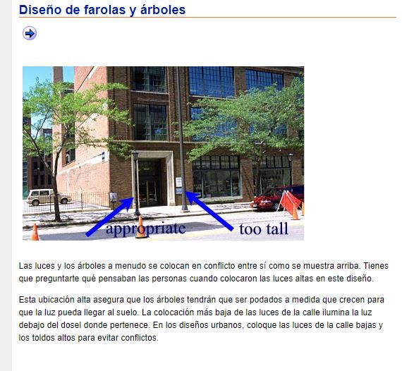 Si no, el árbol podría ser podado incorrectamente para mantenerlo bajo la luz. Esto crea costos de poda recurrentes y no proporciona sombra al área. Los árboles de tamaño mediano pueden ser inadecuados cerca de las luces bajas porque bloquean la luz. Las ramas pueden no crecer lo suficientemente alto como para entrenar sobre la luz. Los árboles muy pequeños (de 8 a 10 metros de altura pueden ser adecuados si las copas no alcanzan las lámparas.