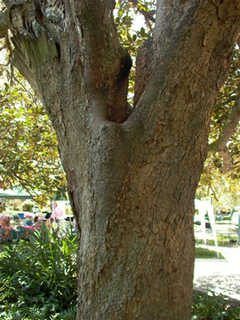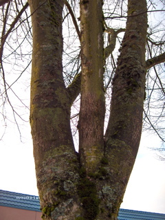 Estos árboles tienen troncos codominantes agresivos que crean una estructura deficiente debido a las inclusiones de corteza ( haga clic aquí para obtener información sobre las inclusiones de corteza).