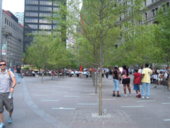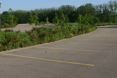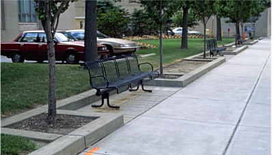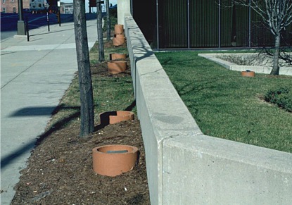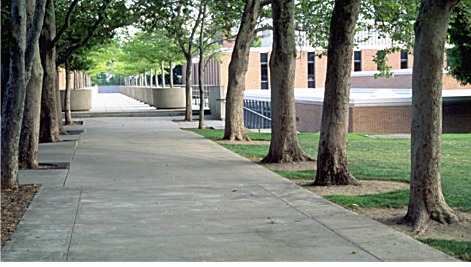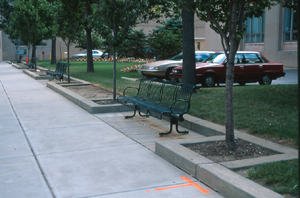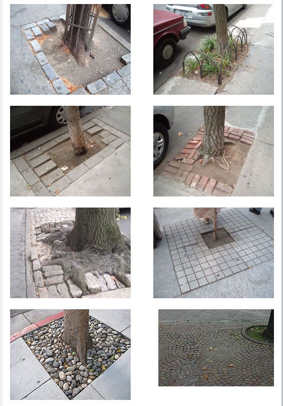 Otra alternativa al diseño convencional es proporcionar una larga franja de tierra suelta que conecta una fila de recortes (ver más abajo). Esto crea un corredor de suelo adecuado para la penetración de la raíz. Estas técnicas permiten a los peatones caminar libremente sobre el área y proporciona aire y agua al sistema radicular.