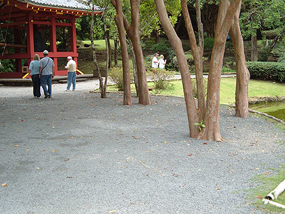 La grava gruesa (al menos dos pulgadas de tamaño de partícula) utilizada como base de la acera ayuda a mantener las raíces muy por debajo del camino.