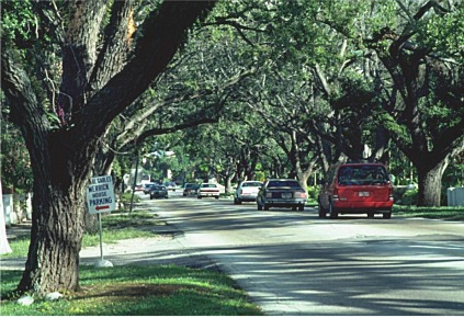 Miami, Florida, plantó robles vivos a lo largo de la calle y los colocó a unos 8 pies del borde de la carretera. Los árboles ganaron un tamaño tremendo debido al acceso casi ilimitado que las raíces tenían al espacio del suelo. Las raíces pudieron crecer en céspedes adyacentes de las casas a lo largo de esta calle.