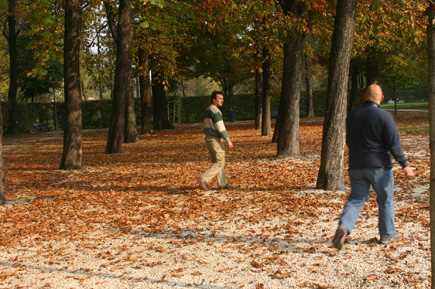 Árboles espaciados muy cerca plantados en un parque en Parma, Italia. Los árboles se erguían formando un dosel cerrado que imitaba un verdadero bosque y producía un espacio sombreado que disfrutaba la comunidad.