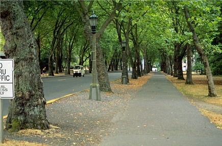 Los árboles espaciados cerca de una calle forman un dosel desarrollado en ramas lejos del suelo. Esto crea una sensación de bosque natural y reduce el mantenimiento que normalmente se requiere en árboles espaciados más lejos. La superficie de grava en el camino permite que el aire y el agua entren en la zona de la raíz. También ayuda a mantener las raíces debajo de la superficie.
