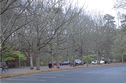 Se plantaron árboles a unos 50 pies de distancia. Debido a que los árboles estaban espaciados tan lejos, comenzaron a crecer extremidades inferiores agresivas. Las extremidades inferiores están caídas, creando un hábito más extenso que el que hubiera ocurrido con un espacio más cercano. Aunque el hábito de propagación es bueno para los parques y quizás otros lugares donde los vehículos y los peatones no tienen que pasar debajo del dosel, tiene poco lugar en el paisaje urbano y suburbano.