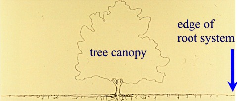 Puede haber regulaciones locales que especifiquen distancias mínimas de retroceso de árboles desde tanques sépticos y campos de drenaje. En general, las raíces en la mayoría de los árboles que crecen en un área abierta del suelo se extienden aproximadamente 2 a 3 veces más allá del borde de la copa.