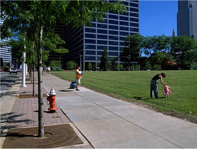 Seattle, Washington plantó cuatro hileras de arces de hoja grande a lo largo de la calle y en los céspedes de este campus. Los árboles ganaron un tamaño tremendo debido al acceso casi ilimitado que las raíces tenían al espacio del suelo.