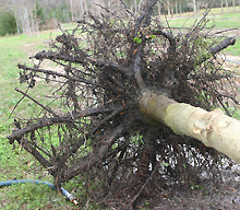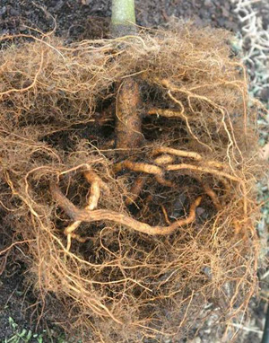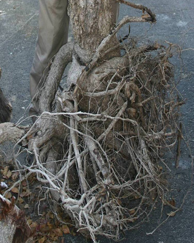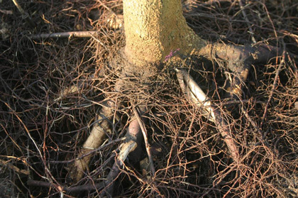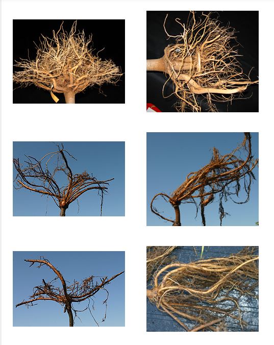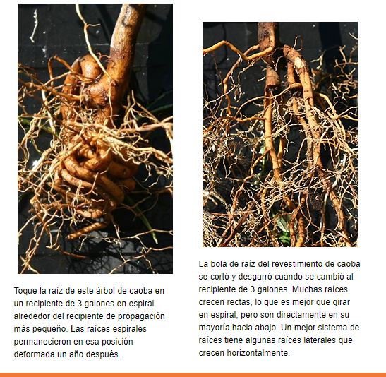 Las raíces de los árboles deformadas dentro de los primeros meses de propagación en el vivero pueden condenar a un árbol a muerte prematura. Desafortunadamente, a menos que se examinen varios sistemas raíz antes de la compra, el comprador no verá estos defectos.
