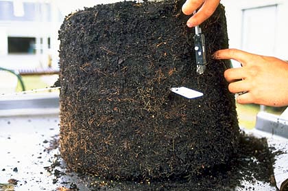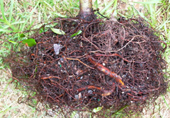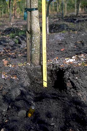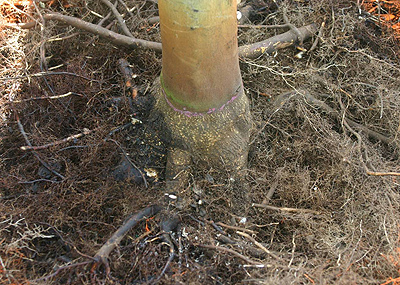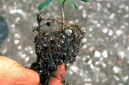 Por otro lado, un estudio mostró que después de que los árboles recibían riego por encima y transmitían la fertilización durante dos años en el vivero, concentrar el riego o el fertilizante cerca del tronco no influía en el crecimiento de las raíces finas ( Beeson y Gilman, 1995 ). Aparentemente, para aumentar las raíces finas cerca del tronco, la aplicación de riego y fertilizantes al área del cepellón debe comenzar poco después de que el árbol se siembra en el campo de vivero.